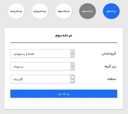2. فرم مرحله دوم شامل گروه کسب و کار و منطقه است، مطابق عکس زیر فرم شماره 2 رو تکمیل کنید و به مرحله بعد برید .