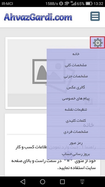 6. عکس زیر صفحه پروفایل کاربری شماست ، برای نمایش یا عدم نمایش گزینه های کاربری بر روی دکمه چرخدنده کلیک کنید.